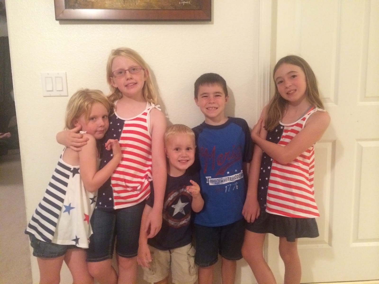 Well we didn't do much for 4th of July... The Davis's came over and ate and play games and just hung out (at one point both husbands took naps!HA!) But we were all in our red white and blue and Ashley and I still had on our medals so you get to look at the pictures. You're welcome. :)